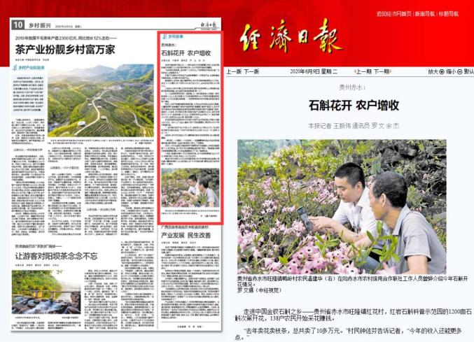 《经济日报》以题为《贵州赤水:石斛花开 农户增收》聚焦贵州赤水特色产业——石斛。