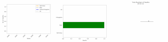 plot.set_title('Total Number of Deaths ' + str(df1.index[min( i, len(df1.index)-1 )].strftime('%y-%m-%d')), fontsize=12)import matplotlib.animation as ani