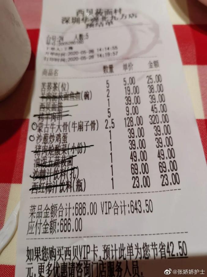 今年4月份,有网友反映西贝莜面村复工后大幅涨价。“本来以为海底捞涨价涨得有点多,转眼看了下西贝的外卖菜单,土豆条炖牛肉80了,酸菜封缸肉80多,海底捞和西贝比真的是毛毛雨。”