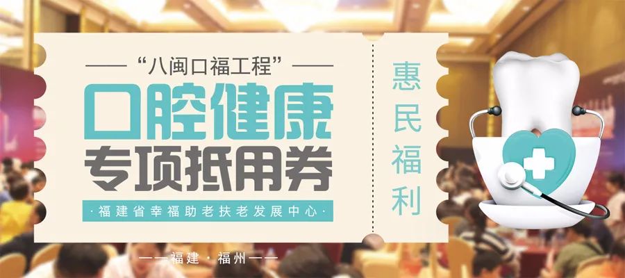 为释放健康医疗消费需求,减轻现阶段广大市民看牙的经济负担,促进福州经济数字化转型升级,2020年4月16日,福建省幸福助老扶老发展中心正式公布《关于正式开展“八闽口福工程”的通知》,联合福州的5家省市医保定点单位(含福州美可普口腔医院)、“八闽口福工程”指定合作单位,面向以福州市及周边县市的市民免费发放看牙专项抵用券(简称“看牙券”),鼓励及时解决口腔健康问题,提高生活质量。
