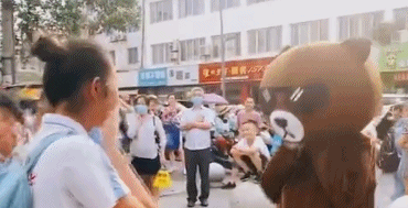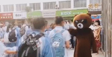 惊呆!妈妈扮网红熊接女儿放学,网友看完后羡慕哭了!