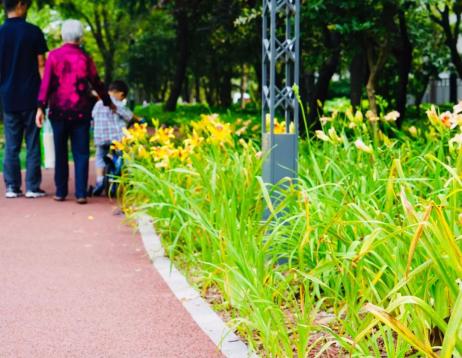 广粤路绿道:广粤路绿道应用了包括凝望、西瓜片、印度天空、大眼睛等10种品种的萱草,根据其花期的前后差别做了相应配置。广粤路路道设有“金萱园”萱草主题街心花园,萱草品种繁多,花期长,路过的市民朋友可以去观赏一下。