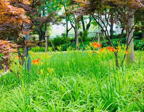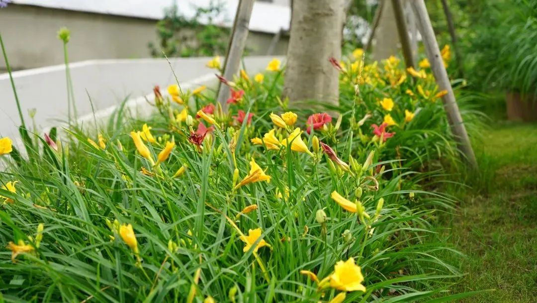 虹口街边盛开的萱草
