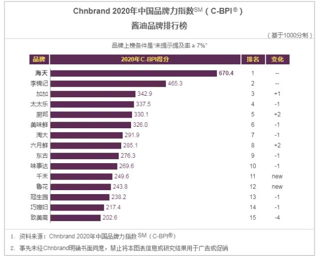 [8].调味品冻品商讯. 权威发布丨2020年调味品第一品牌榜出炉,海天、李锦记、恒顺、太太乐....表现不俗. https://mp.weixin.qq.com/s/JGwqTkmSTzPtvmtjskI2uw