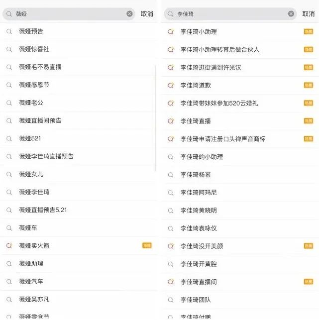 第二天登上热搜的,都是那些明星的名字,与薇娅相关的,是简单粗暴的五个字,“薇娅直播间”。