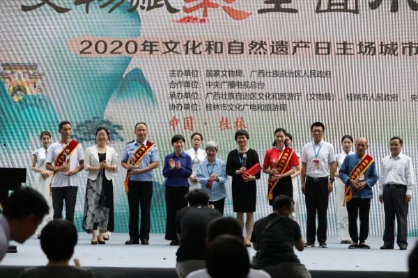 在“2020文化和自然遗产日”的主会场广西桂林,13日上午的活动开幕式上启动《文物赋彩全面小康——文物潮我看》融媒体活动,宣推《如果国宝会说话》第三季,公布中华文物全媒体传播精品(新媒体)推介名单、“寻找最美文物安全守护人”推介名单,举行桂林“我们在战‘疫’——文博人抗击新冠肺炎疫情图片展”开幕仪式。