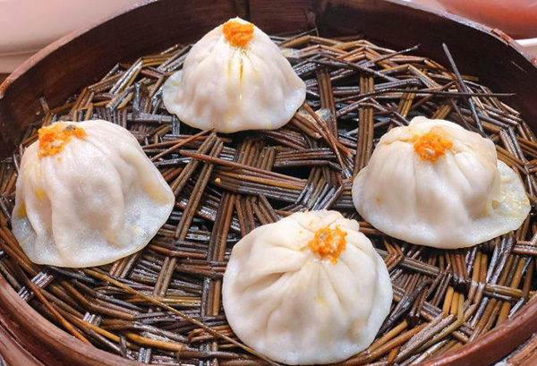 门口柜台上是菜单,花样也多,招牌自然是蟹粉小笼,但分出了层次,比如纯蟹粉小笼,仅用蟹粉为馅。品种最多的是馄饨,馅料来自无锡太湖水产,虾仁馄饨、荠菜虾仁馄饨、太湖三白馄饨外,还有刀鱼馄饨、汽锅鸡馄饨和巨无霸大馄饨,从名字上感觉到一丝“网红味”。