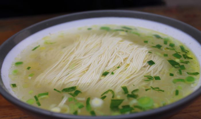 无锡面的极致,是银丝面,一根根细如发丝,煮面入鸡汤,面条吸满汤汁,软而不烂。要实现这种效果,据说是和面时加了鸡蛋清,又用特殊的面刀切出来。