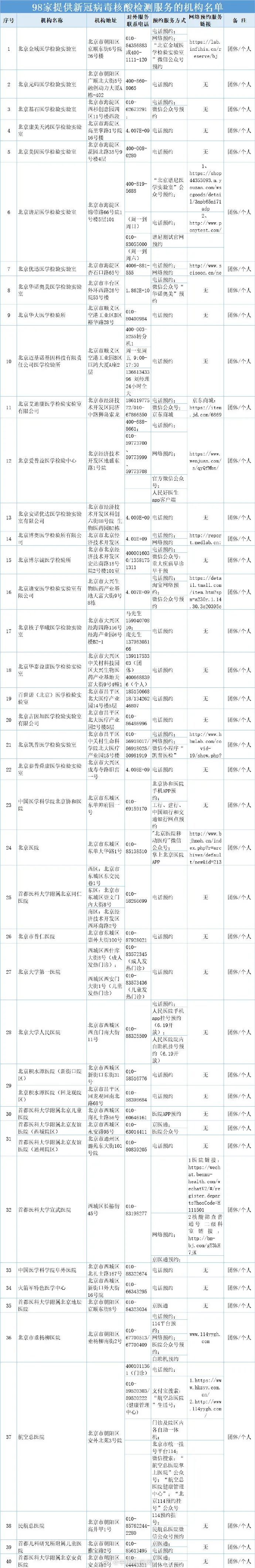 北京公布核酸检测医疗卫生机构名单