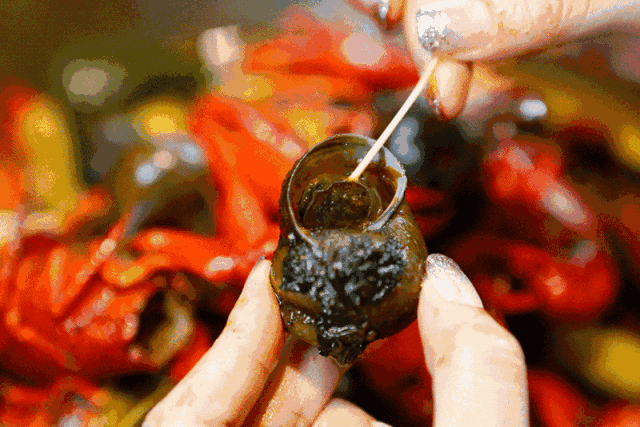 吃螺蛳的美妙,在于嘬。用牙签挑剔,固然便利,但却少了唇舌协作的乐趣。嘬螺时,十分讲究嘴巴的发力,秘诀在于“稳、准、狠”,以短促的方式发力,方可一“嘬”而就。