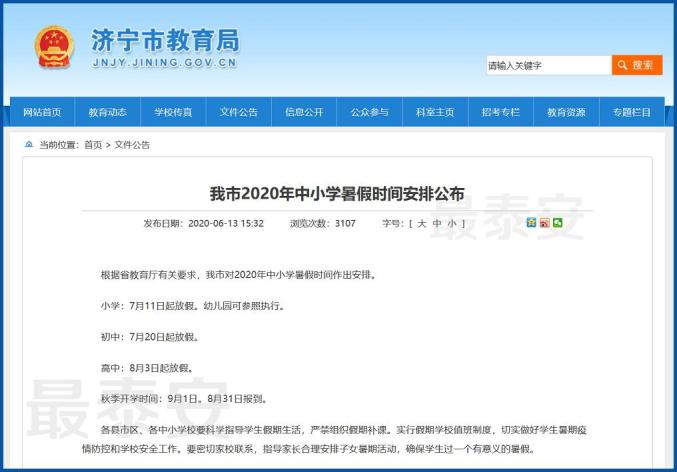 原标题:《定了!山东4市“官宣”中小学暑假时间!》