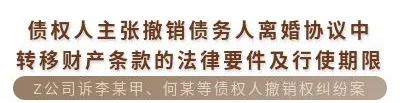 原标题:《债权人主张撤销债务人离婚协议中转移财产条款的法律要件及行使期限 | 案例精选》
