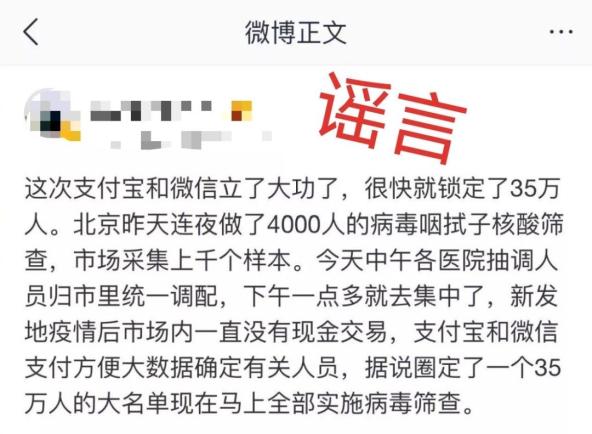 近日,网上曾有消息称“支付宝和微信提供数据,锁定35万人帮助进行病毒筛查”。