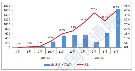 而5G价格持续下探,市场呈现回暖的迹象。据中国信通院近日发布的数据显示,4月国内手机市场总体出货量达4172.8万部,同比增长14.2%,环比增幅接近一倍达91.8%,结束了连续10个月的下跌态势。