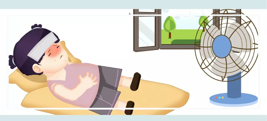 3.降温。把电风扇或者空调打开,帮他散热,但不要让风口对着孩子吹。也可以用冷的湿毛巾敷上孩子的头部,或者给他立即洗一把温水澡,帮助孩子降温。