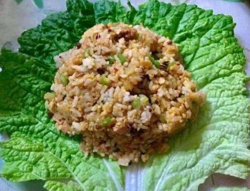 打饭包是东北家常菜,饭一般是小米和大米一起蒸成的,东北叫二米饭,再配上土豆泥、鸡蛋酱、葱花、香菜,用大白菜叶子包好,一口咬上去,葱香混着酱香,饭香融着菜香,加上菜蔬之间的混香,真是特别的美味。