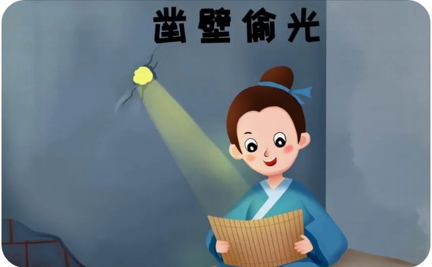匡衡回到家中,悄悄地在墙上凿了个小洞,邻居家的烛光就从这洞中透过来了。他借着这微弱的光线,如饥似渴地读起书来,渐渐地把家中的书全都读完了。一天,匡衡卷着铺盖出现在大户人家门前。他对主人说:“请您收留我,我给您家里白干活不要报酬。只要允许我阅读您家的全部书籍就可以了。”主人被他的精神所感动,答应了他借书的要求。匡衡通过勤奋学习,后来做了汉元帝的丞相,成为西汉时期有名的学者。