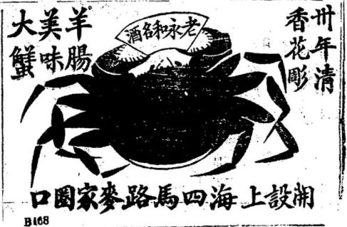 “酒店随在皆有,下酒物皆冷菜,欲食熟肴粥饭,可令酒保往购。福州路豫丰泰并售热菜。螃蟹上市时,无不兼售此物,其价书明,蟹厴一望而知。中以言茂源、王宝和为最著名。每斤酒价,太雕一角九分二,花雕一角六分,京庄一角三分,均大洋。”
