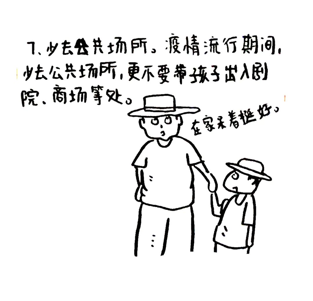 少去公共场所。疫病流行期间,少去公共场所,更不要带孩子出入剧院、商场等处。