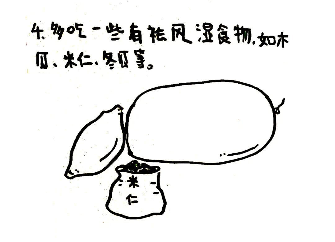 多吃一些具有祛风除湿的食物,如木瓜、米仁、冬瓜等。
