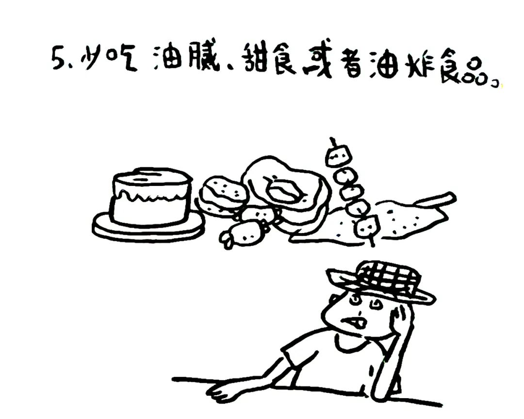 少吃油腻、甜食或者油炸食品。