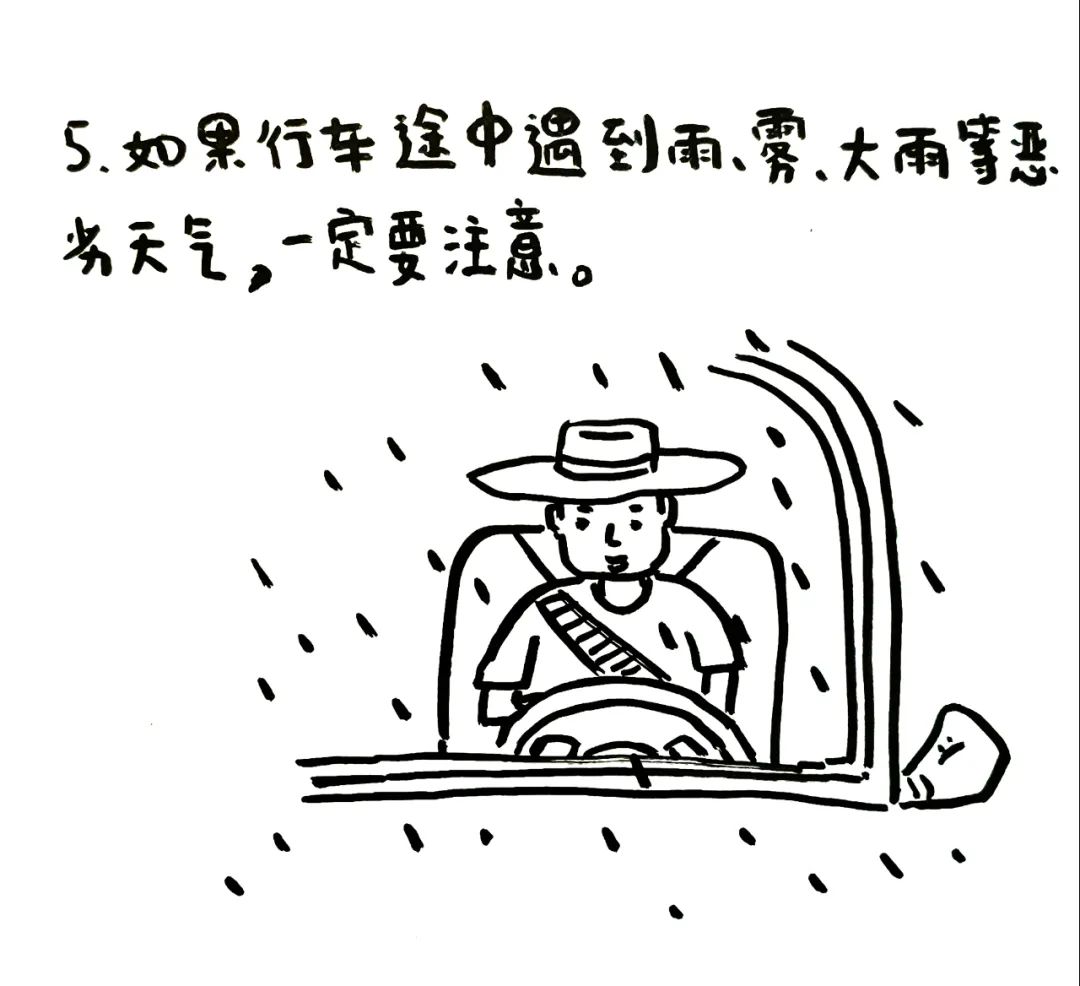 如果行车途中遇到雨、雾、大风等恶劣天气,一定要注意。