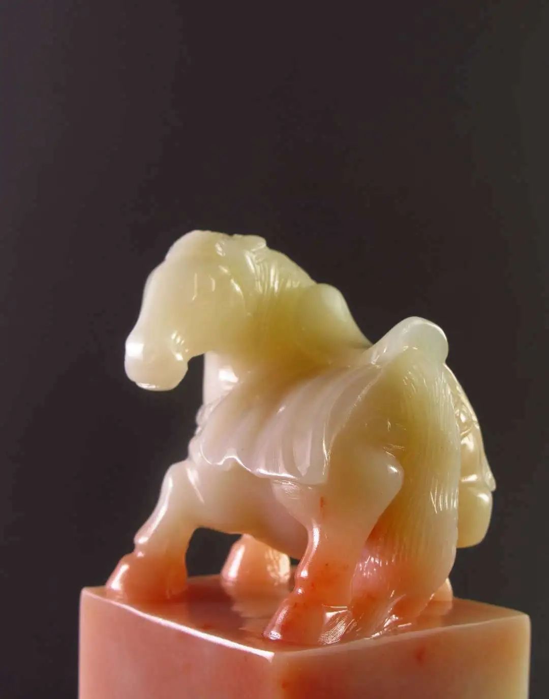 精品结晶一马当先马钮印章,质地通灵!色彩红润油亮光泽,手感温润顺滑,肉质凝结细腻,雕工精美大气。