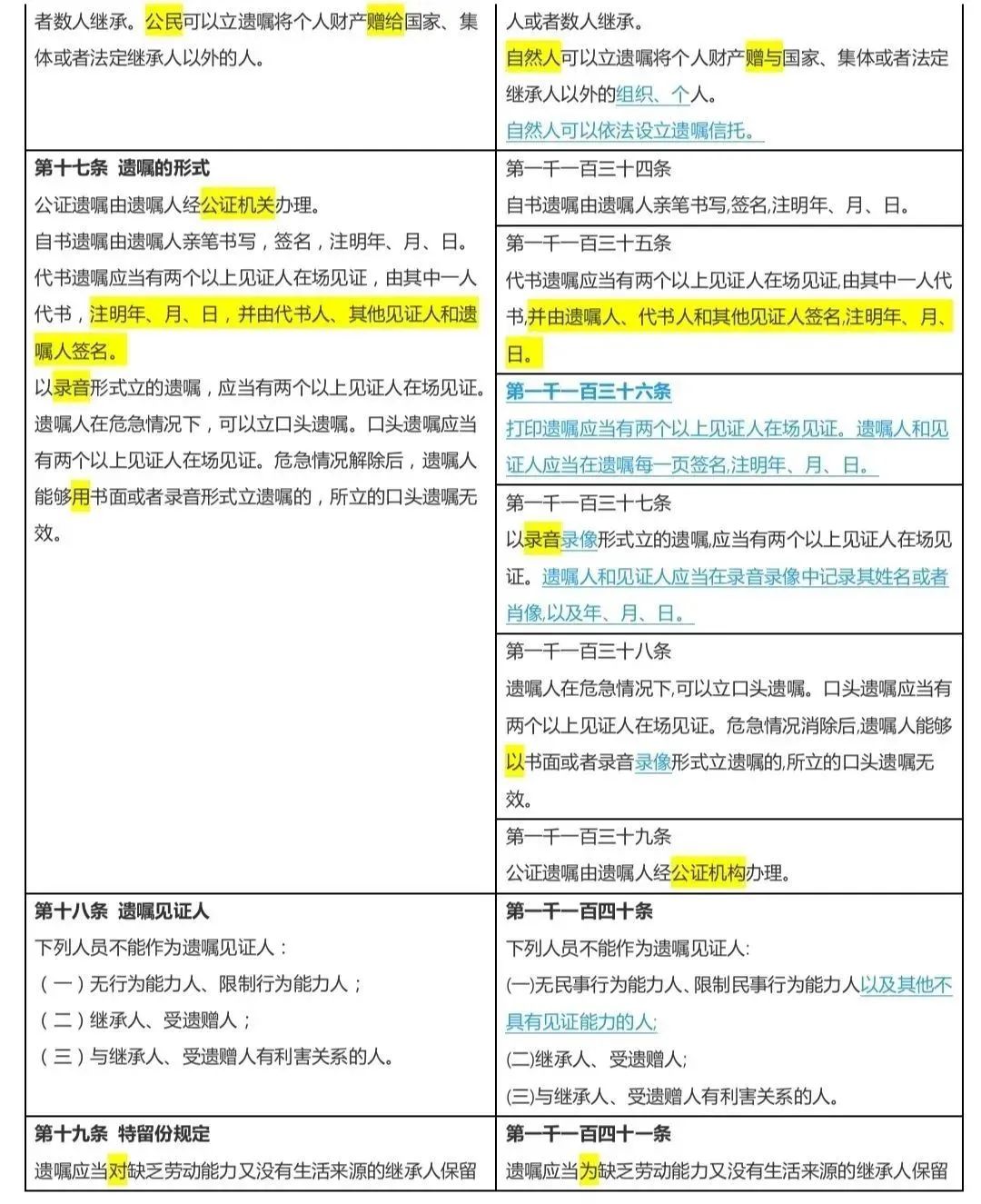 取消了《继承法》第20条的“自书、代书、录音、口头遗嘱,不得撤销、变更公证遗嘱。”公证遗嘱效力优先地位,《民法典》第1142条仅规定:“立有数份遗嘱,内容相抵触的,以最后的遗嘱为准。”也就是说2020年1月1日后,各种遗嘱效力平等,数份遗嘱有冲突的以最后一份遗嘱为准。在实践中,如果适用公证遗嘱优先来裁判案件,不仅不能真实还原立遗嘱人的真实意愿,案件的处理也达不到公平和谐的良好社会效果。此次《民法典》将公证遗嘱优先条款予以取消,使遗嘱不再因形式上的差异而有所不同,而是将遗嘱效力的决定权回归于立遗嘱人,以遗嘱订立的时间先后来判断遗嘱效力。此条文不仅真切回应了民声,也体现出民法权利本位的指导思想。
