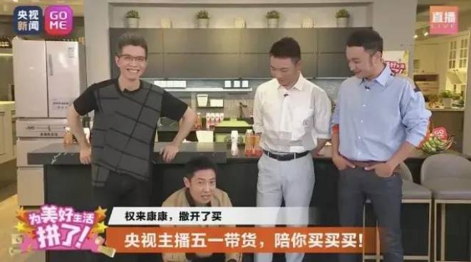 四位央视主播,康辉、撒贝宁、朱广权、尼格买提,3小时直播,1600万的观众,卖货5个亿。