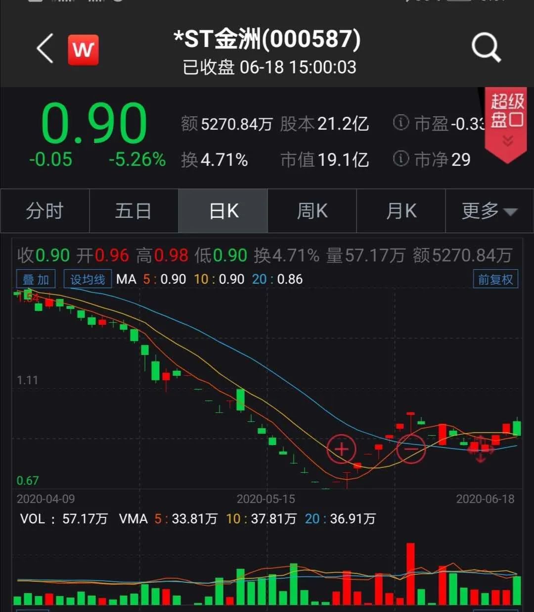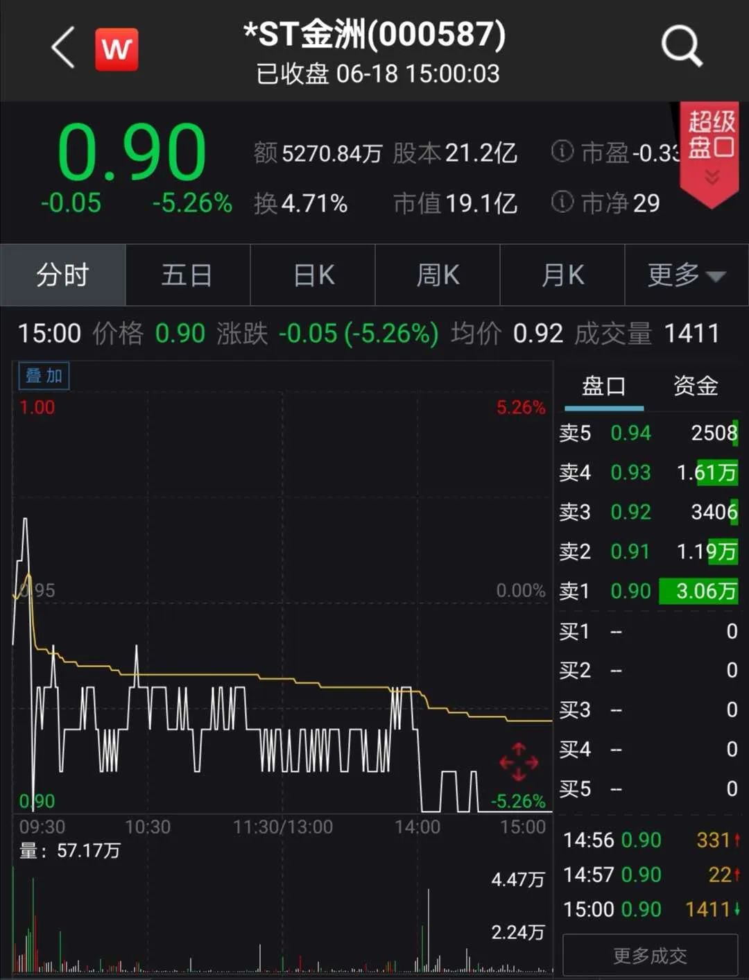 刚刚脱离面值退市“鬼门关” 的*ST金洲又妖事缠身。因其2019年年报会计出现差错受到监管问询,近日公司给出的解释是“遭黑客入侵”。会计差错“甩锅”黑客?谜之说辞引发市场热议。今天(6月18日)早盘*ST金洲曾一度触及跌停,随后跌停打开进入窄幅震荡,收盘再度跌停,报0.90元,跌5.26%。