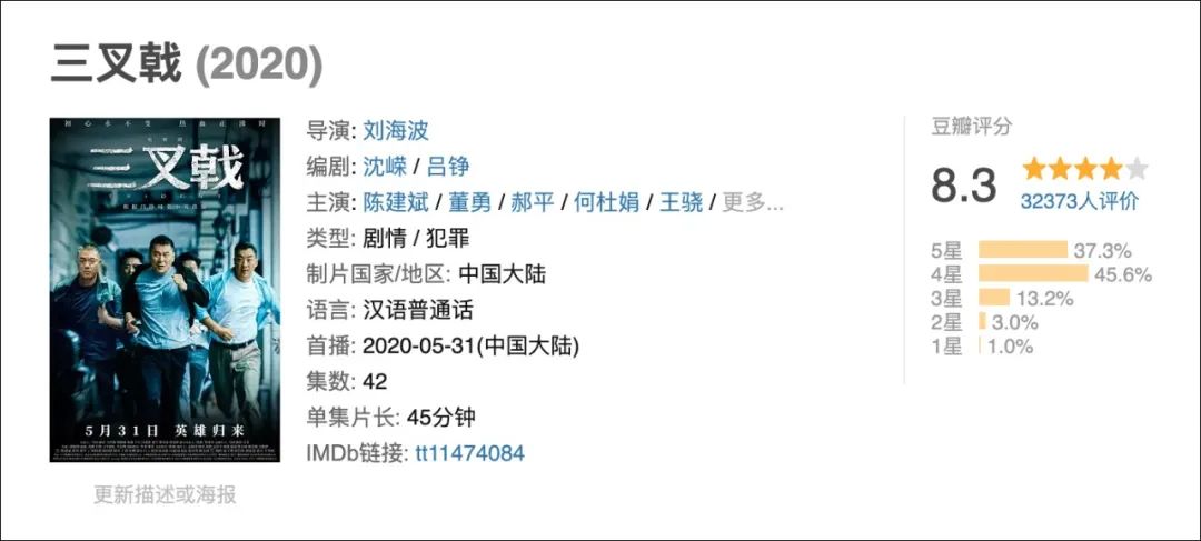 自从由陈建斌、董勇、郝平主演的犯罪悬疑剧《三叉戟》首播,这样的溢美之词便不绝于耳,豆瓣网更是以8.3的评分以证这部剧作的质素过硬。