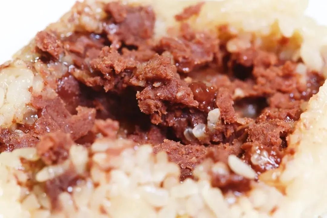 比起碱水粽的端庄大气,洗沙粽更像是一个甜甜的小姑娘,吸饱了水的红小豆在古法研磨技艺之下抹去棱角,变得细腻温柔。湖州人喜欢把粽子做成四角形状,这样蒸煮的时候受热均匀,“宽衣解带”后咬在嘴里,馅料也更加均匀,每一口满足的豆沙,都令人坠入甜蜜梦乡。