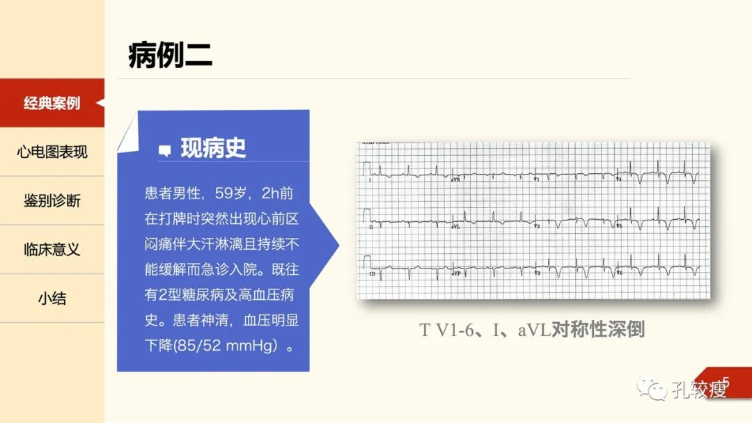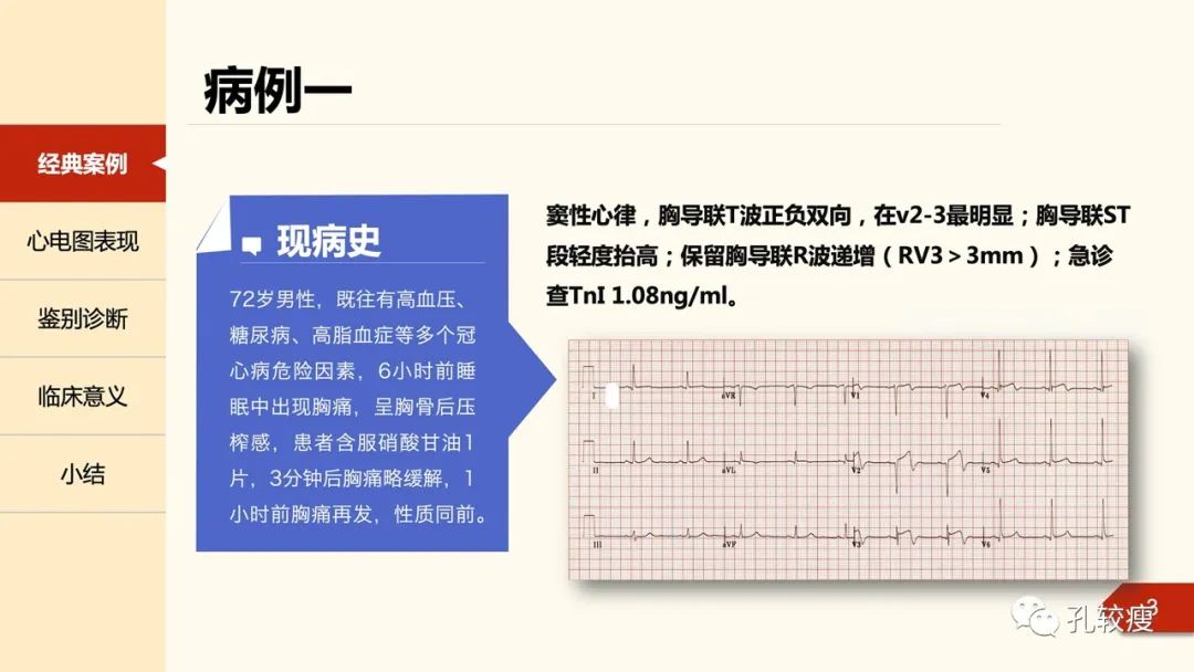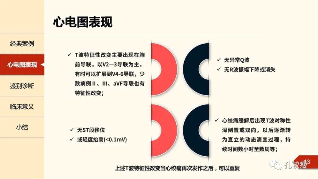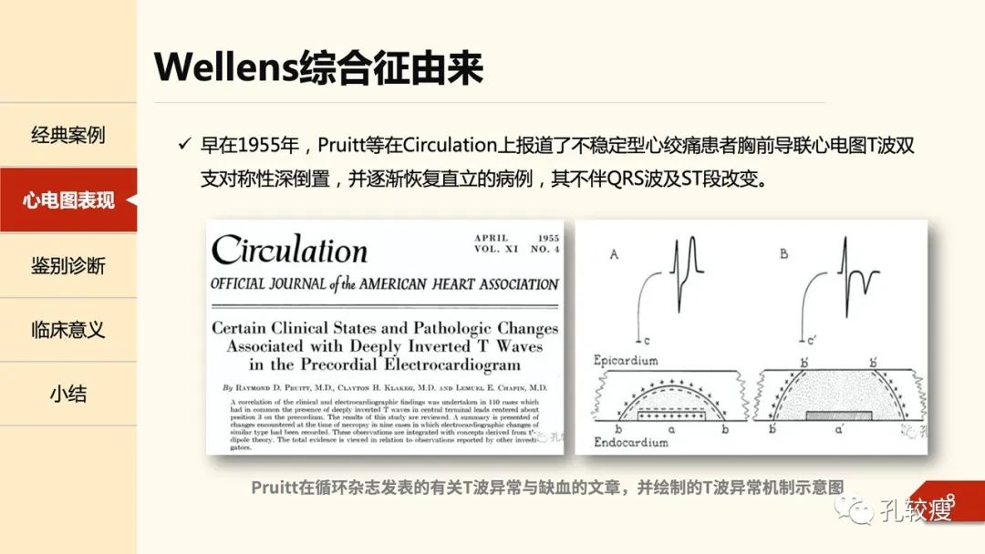早在1955年,Pruitt等在Circulation上报道了不稳定型心绞痛患者胸前导联心电图T波双支对称性深倒置,并逐渐恢复直立的病例,其不伴QRS波及ST段改变。。