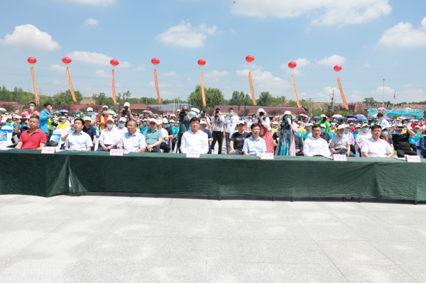 开幕式上,主持人首先对九台区城市品牌形象进行了推介,九台区城市形象定位、九台精神、发展目标、区歌、九台标志、吉祥物等元素与现场的观众一一见面。吉祥物“九宝”玩偶与现场的嘉宾亲切互动,派发伴手礼,著名词曲作家、歌手大平老师倾情演唱区歌《来了就不想走的地方》。与此同时,数百名游客开启“马鞍山趣味徒步”活动,主持人与徒步活动进行现场连线,宣扬健康运动新风尚。随后,九台区区长宋长者发表了热情洋溢的致辞。他表示,九台区依托独特的区位优势和丰富的资源禀赋,大力发展文旅产业,红色教育、关东民俗、乡村民宿、冰雪运动、山水生态等旅游产品竞相涌现,“一廊一脉两带四区”的空间布局初步建立,九台已经成为长吉两市之间最佳旅游目的地。