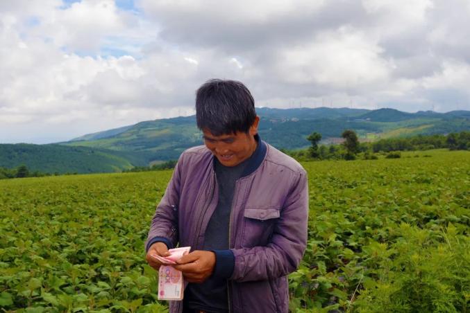 种植户赵保红种了13亩雪莲果,由于有了种植经验,今年的雪莲果长势比去年要好得多,果商第一眼就看中了他家的果子,以每亩3000元的价格预订了他家的全部雪莲果。拿到定金的老赵乐开了花:“今年村里提前联系了果商,雪莲果还有一个多月才能开挖就有人来预订,往年我自己联系价格给的低,而且变成现钱要很晚,今年价格还不错,果商提前支付了三分之一的定金,给我们缓解了一部分经济压力。”