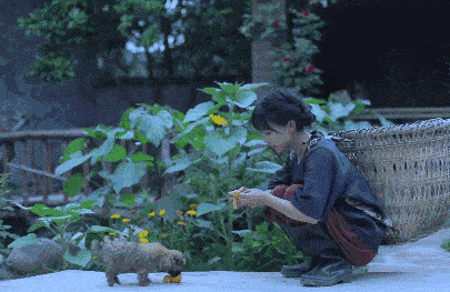 一片树林,一间农家屋舍,一位长发飘飘的女孩身着布衣,煮食着各种农家美食,田园里鸟语花香,屋上炊烟袅袅,仿佛是人间仙境。但几声狗叫,旁边传来几句老人的叮咛,又分明是现实里真实的生活。