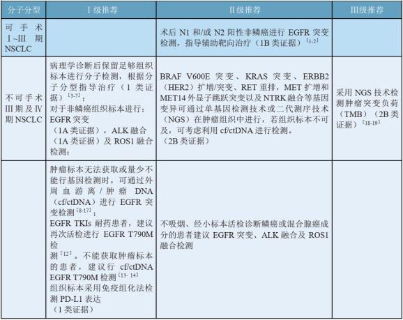表2:2020 CSCO NSCLC诊疗指南分子分型推荐