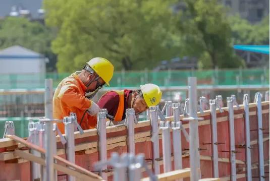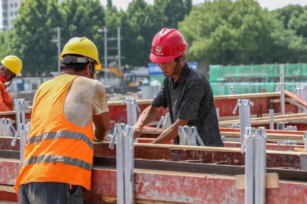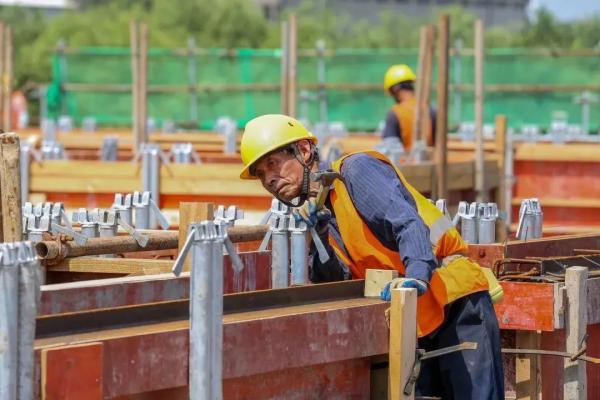 “快!快把标尺对齐!”“电焊进度要再加快!”……烈日炎炎,让人昏昏欲睡,而几个身穿黄色马甲的工人汉子在现场指挥时依旧声音洪亮。刺眼的阳光把他们颜色各异的安全帽照射得锃锃发亮,豆大的汗珠如雨滴一样不停从黝黑的皮肤上滚落,但这丝毫没有影响到他们“火热”的干劲儿……