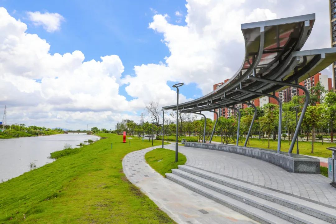 禾益城市公园该公园位于虹桥四路时代倾城小区旁、白蕉工业园北排洪渠南岸,由两个狭长型地块组成,总长约786米,平均宽度约40米,建设面积约为31440㎡。