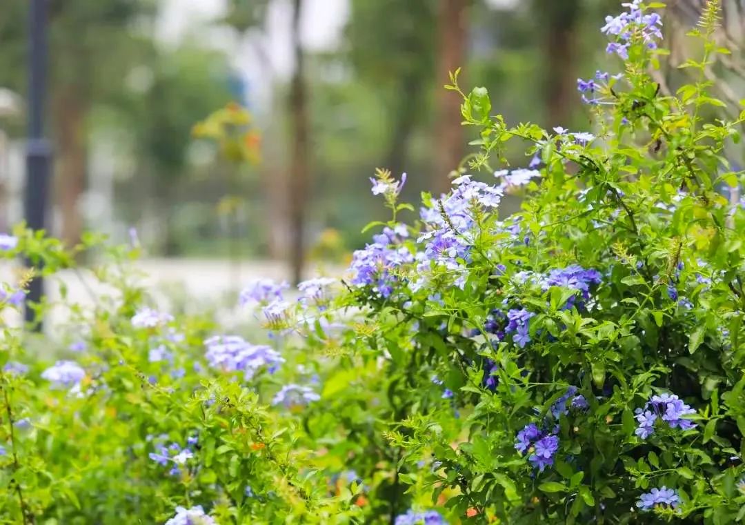 公园内种植了宫粉紫荆、细叶紫薇及美丽异木棉等多种植物,辅以雕塑和造型灯饰,整体景观清新浪漫。