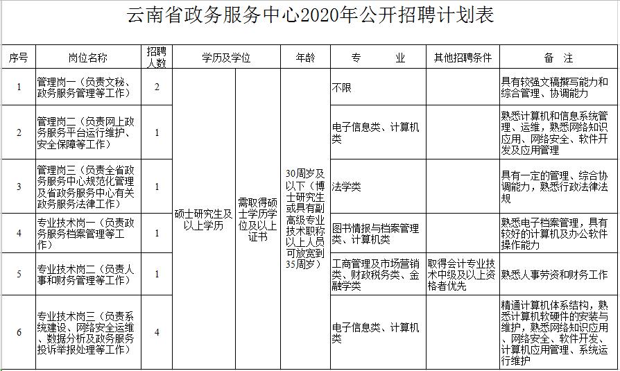 云南省政务服务中心公开招聘工作人员10名。