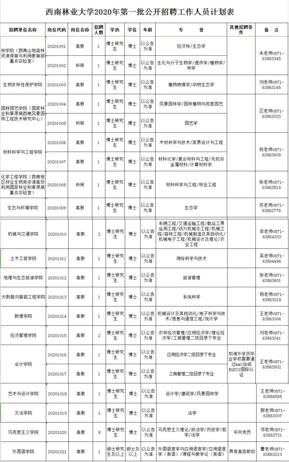 根据《云南省事业单位公开招聘工作人员办法》(云人社发〔2016〕182号)等有关文件规定,结合工作需要,经省教育厅、省人力资源和社会保障厅批准,西南林业大学2020年计划面向社会公开招聘工作人员30名。