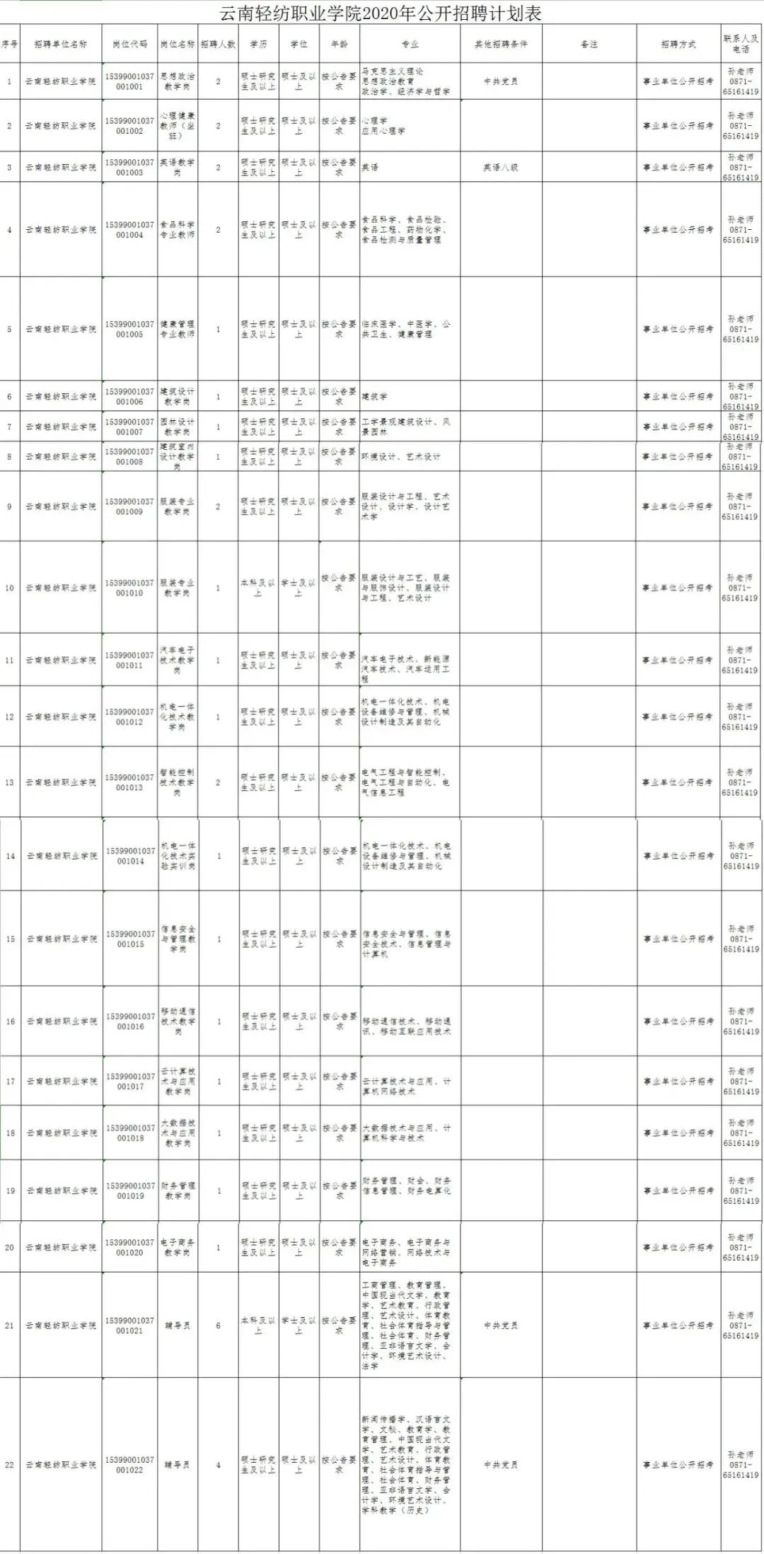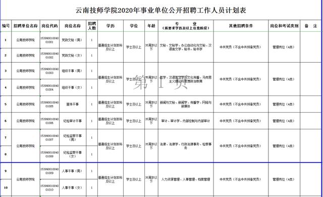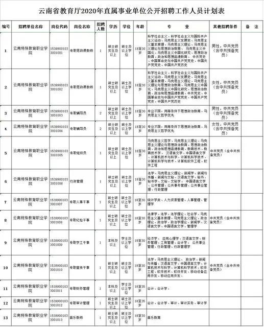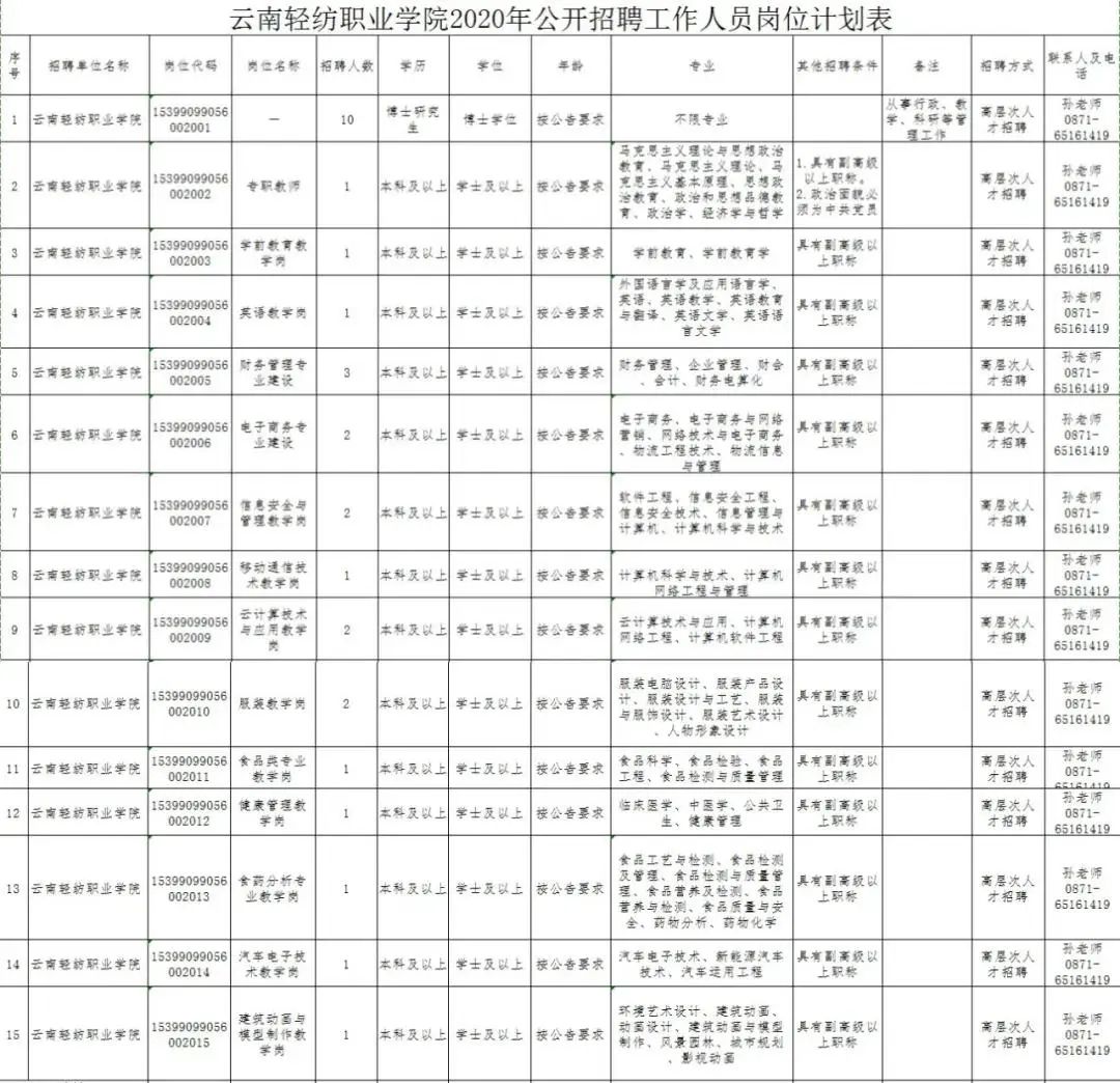 1.根据工作需要,经云南省教育厅、云南省人力资源和社会保障厅批准,云南轻纺职业学院2020年拟面向社会公开招聘事业编制工作人员30名,其中博士学位学历人员10名,副高级及以上专业技术职务人员(本科学位学历)20名,招满为止。
