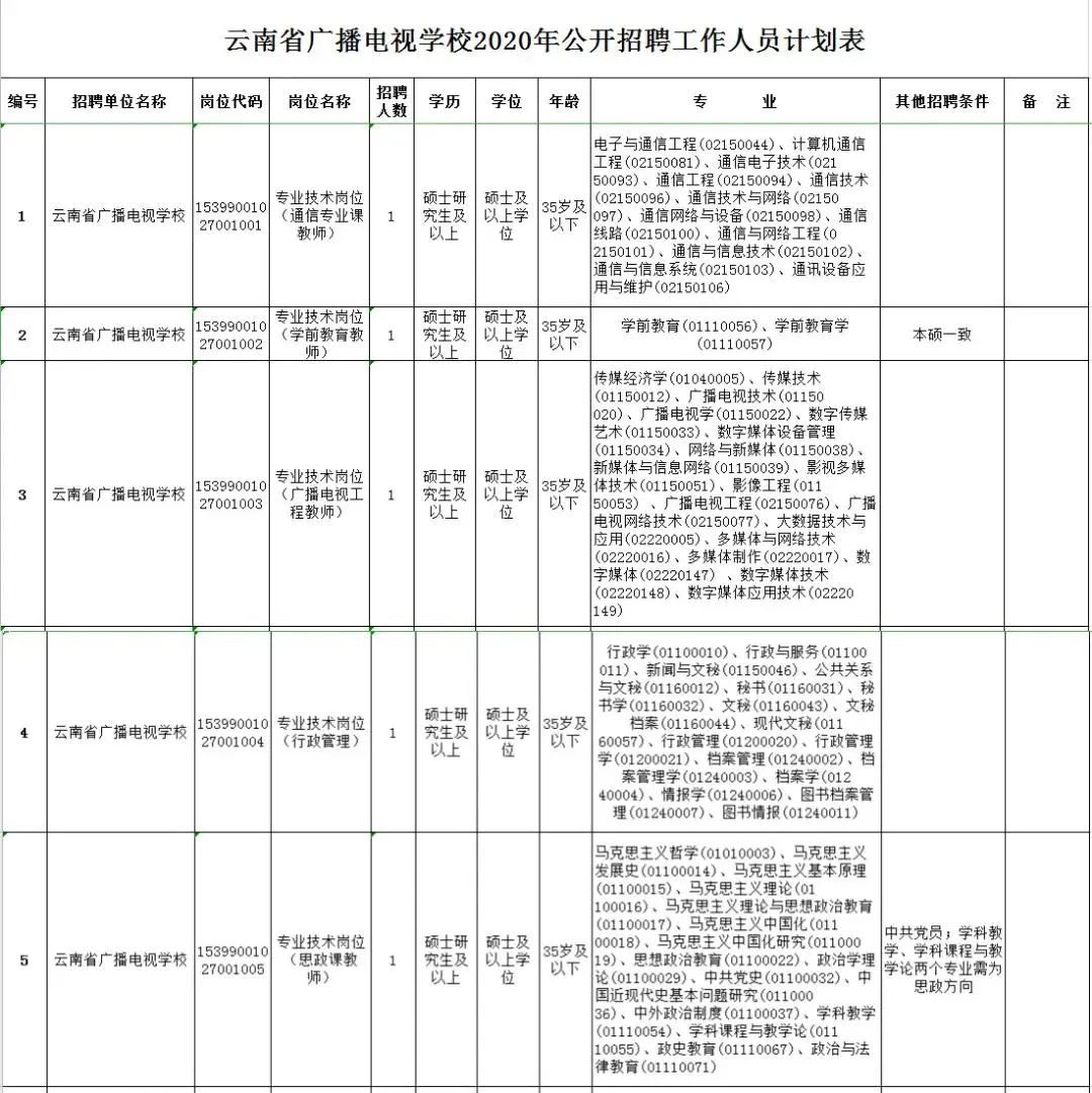 根据《云南省事业单位公开招聘工作人员办法》(云人社发〔2016〕182号)等有关文件规定,结合工作需要,经云南省人力资源和社会保障厅批准,云南省广播电视学校2020年计划面向社会公开招聘工作人员5名。