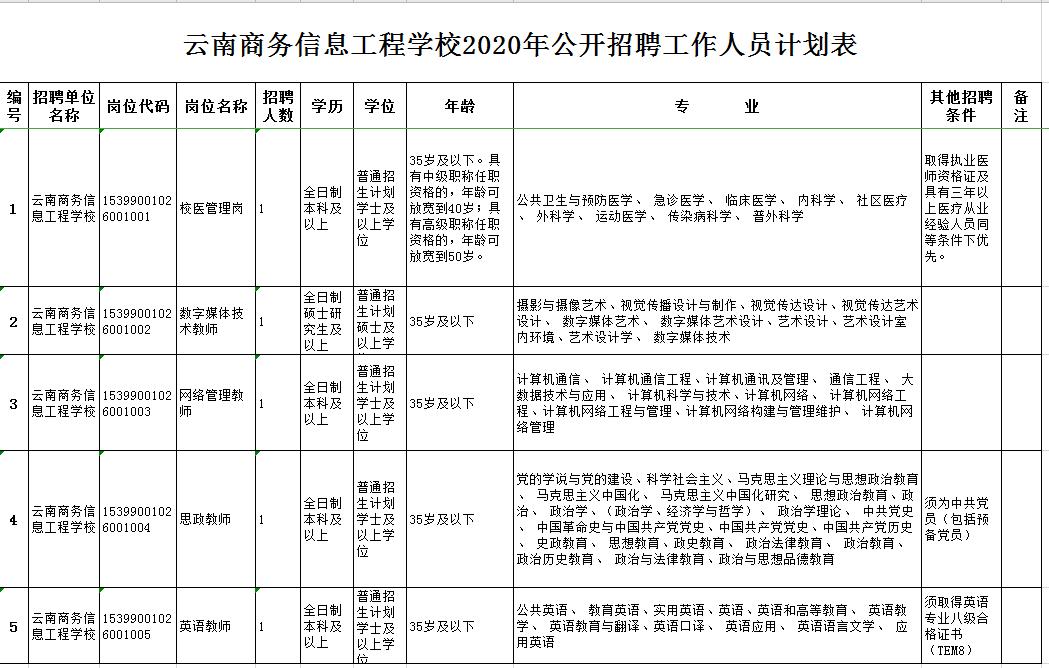 云南商务信息工程学校公开招聘工作人员5名。