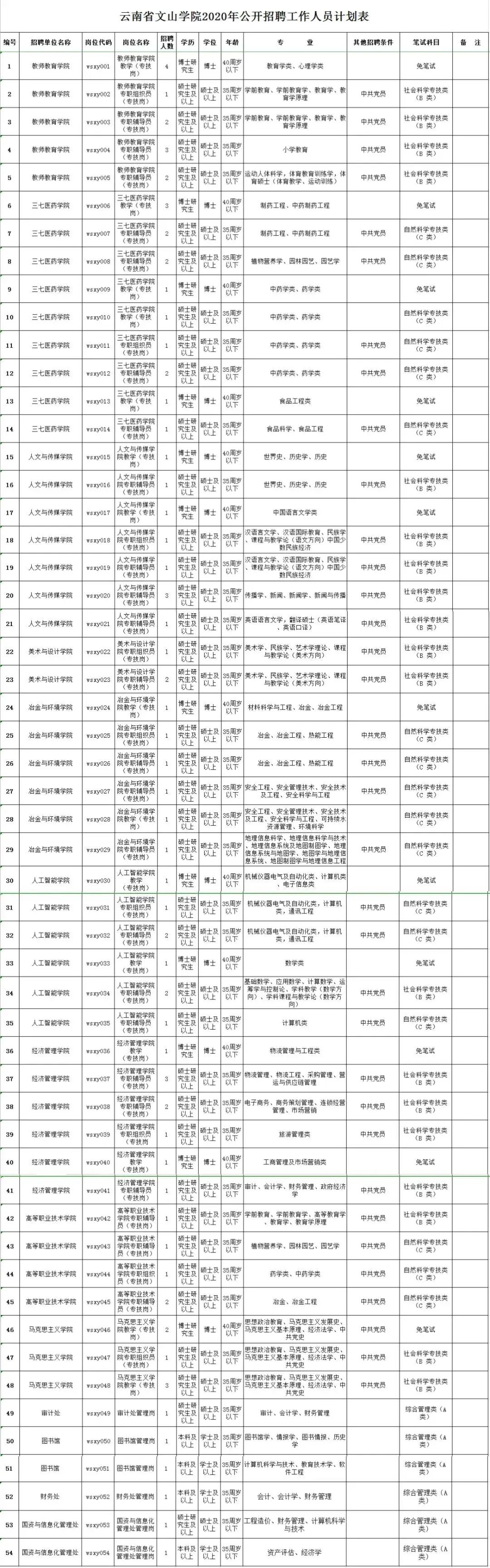 文山学院公开招聘工作人员78名,其中:博士岗位18名、硕士岗位56名、本科岗位4名。
