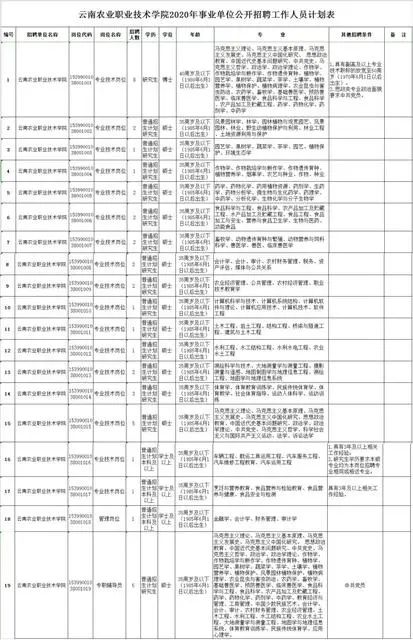 2020年云南农业职业技术学院共公开招聘工作人员43人,其中,管理岗位1人,专业技术岗位42人。