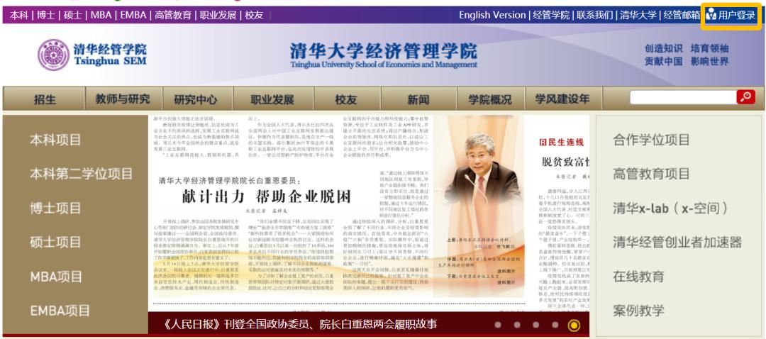 毕业生通过清华经管学院主页(http://www.sem.tsinghua.edu.cn/)右上角“用户登陆”登陆内网,更新个人信息。