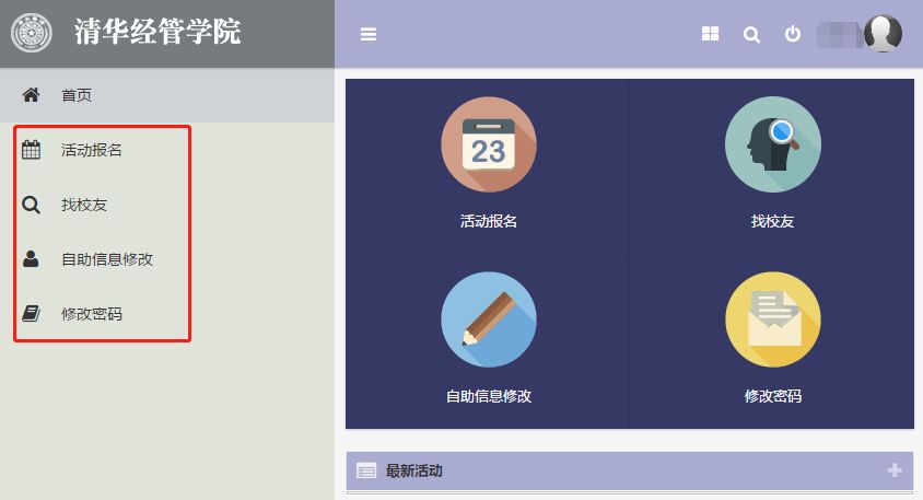 2. 了解最新动态:平台将实时发布清华大学、经管学院和校友的新闻资讯;