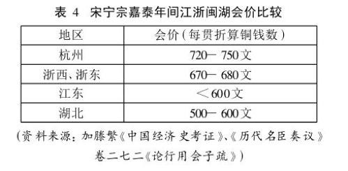 宋代官办纸币基本是依靠帝国政府的强行推动才能推广的,南宋著名文人辛弃疾《论行用会子疏》说得很清楚:南宋纸币“会子”只能在京城临安和军队驻扎地附近的几个地方才能通行,到了村镇乡落和稍远的城市中就没有办法通用了。南宋会子的市场价格(见下表)从帝都向外递减,显示这种货币的价值很大程度上依附于帝国权力。南宋军队驻扎地附近交子通行,当然也不是因为什么商业繁荣,而是因为南宋军队普遍用会子充当军饷。纸币在南宋军队也是依靠帝国强力推动的。比起动辄贬值的纸币,南宋军人一般更愿意接受实物充当军饷。南宋大臣真德秀(1178- 1235)曾经处理过一次军士哗变事件,在这次事件中,军人就是因为往常用一半现钱和一半纸币支付的冬衣补贴改成了全额纸币支付,于是他们感到不满,“相率出城”,“劫掠郡民财物”,最后还是真德秀一方面为他们免罪,一方面按照旧例发放补贴才平息这件事⑫。